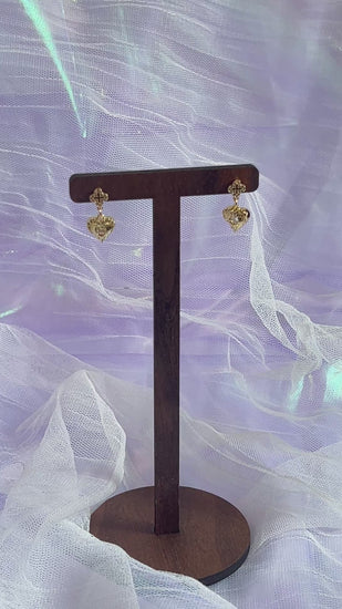 The top of the earring features a delicate four-leaf clover shape, representing luck, hope, faith, and love. At the center of the clover sits a subtle cross detail, adding a touch of grace and spiritual charm.