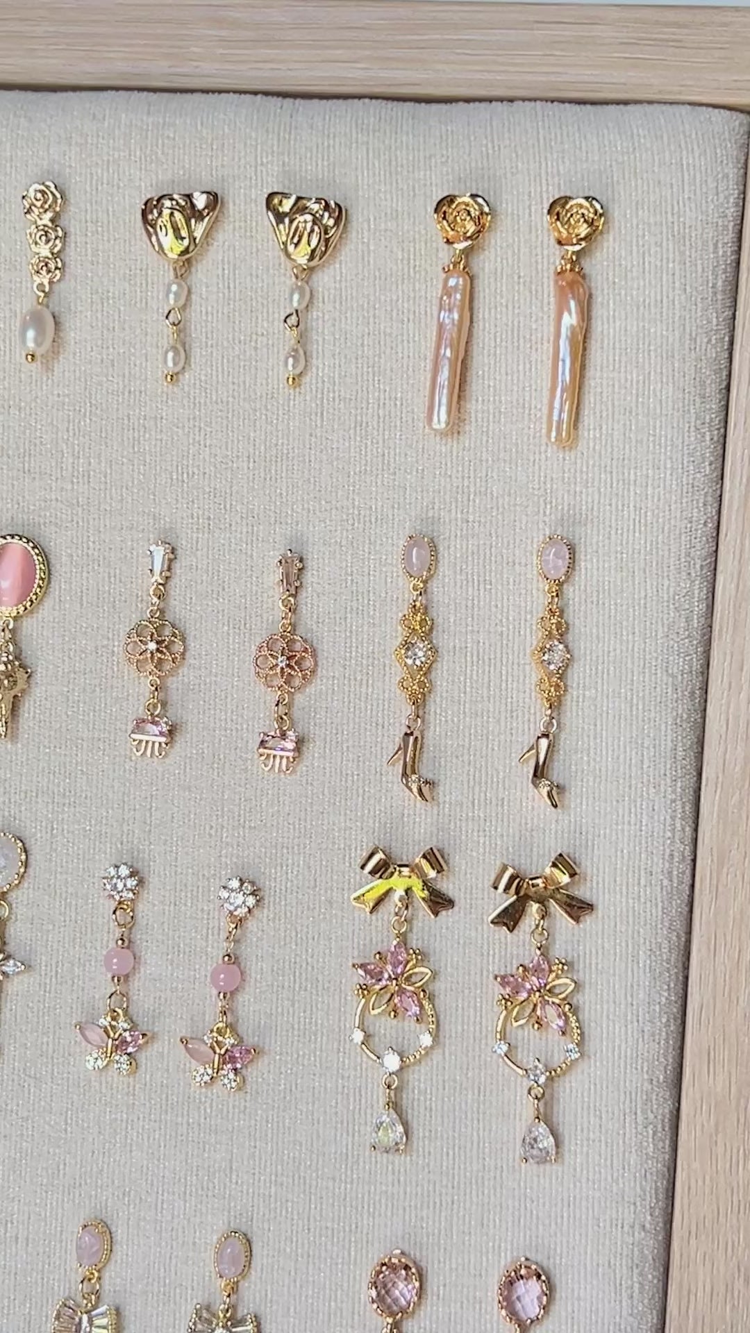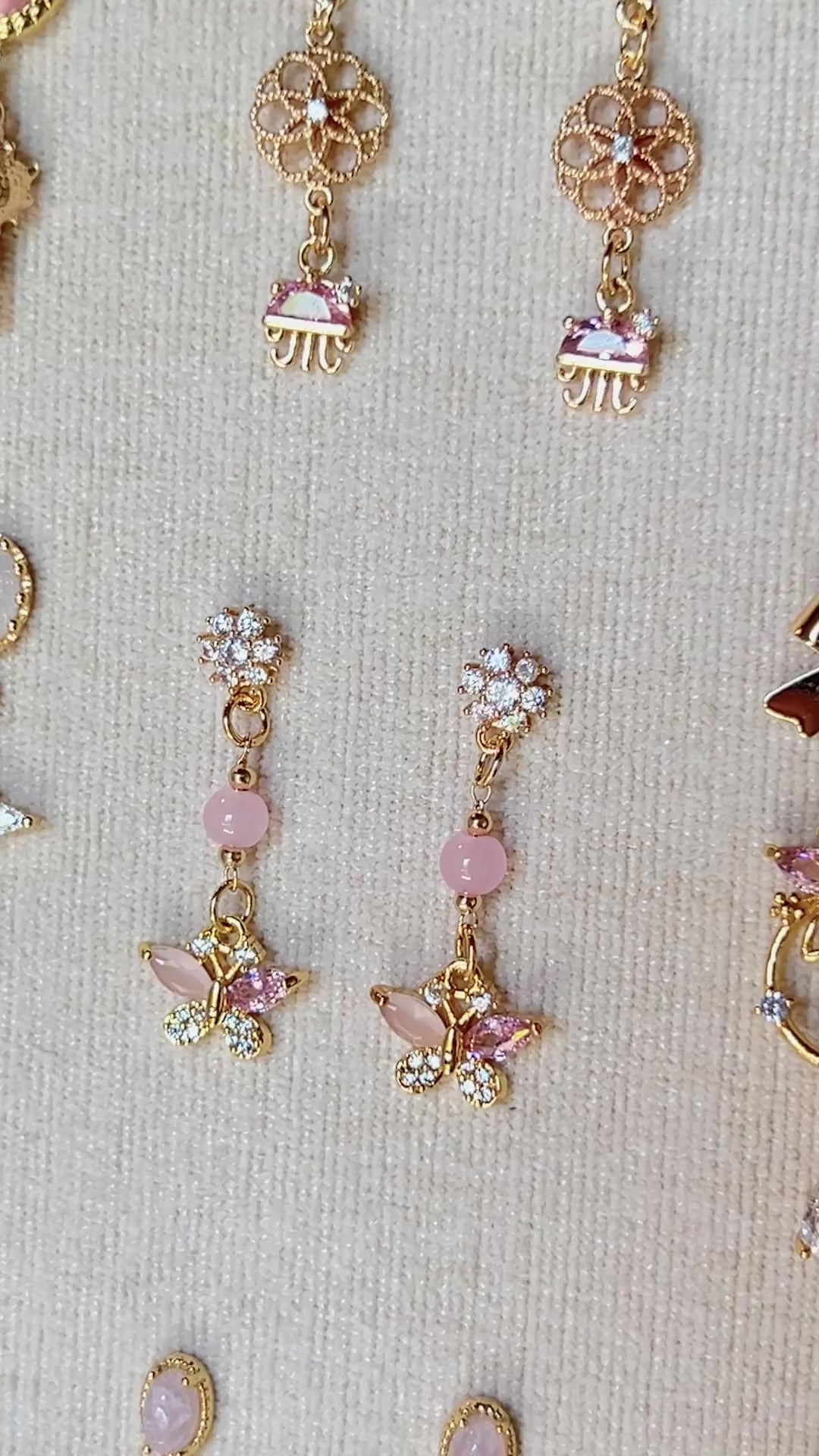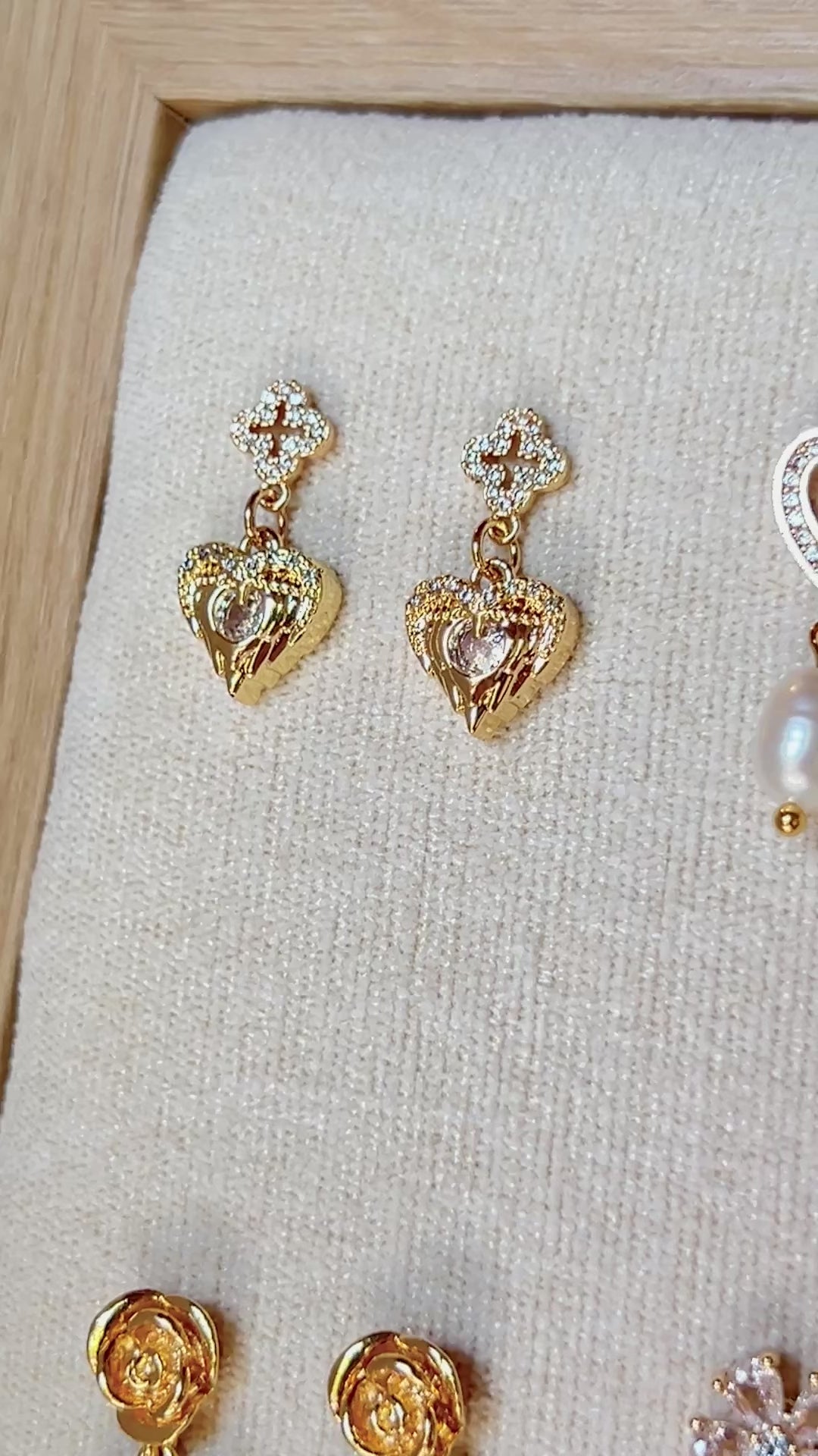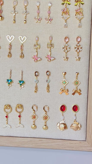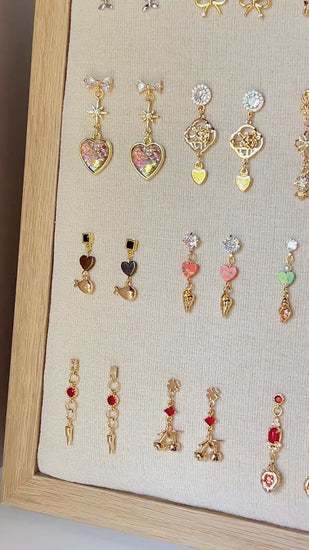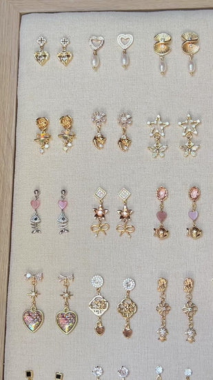 Each pair follows the same theme: Love, but no two designs are ever the same. Every earring is thoughtfully handcrafted using a unique mix of elements, making each piece completely one of a kind.