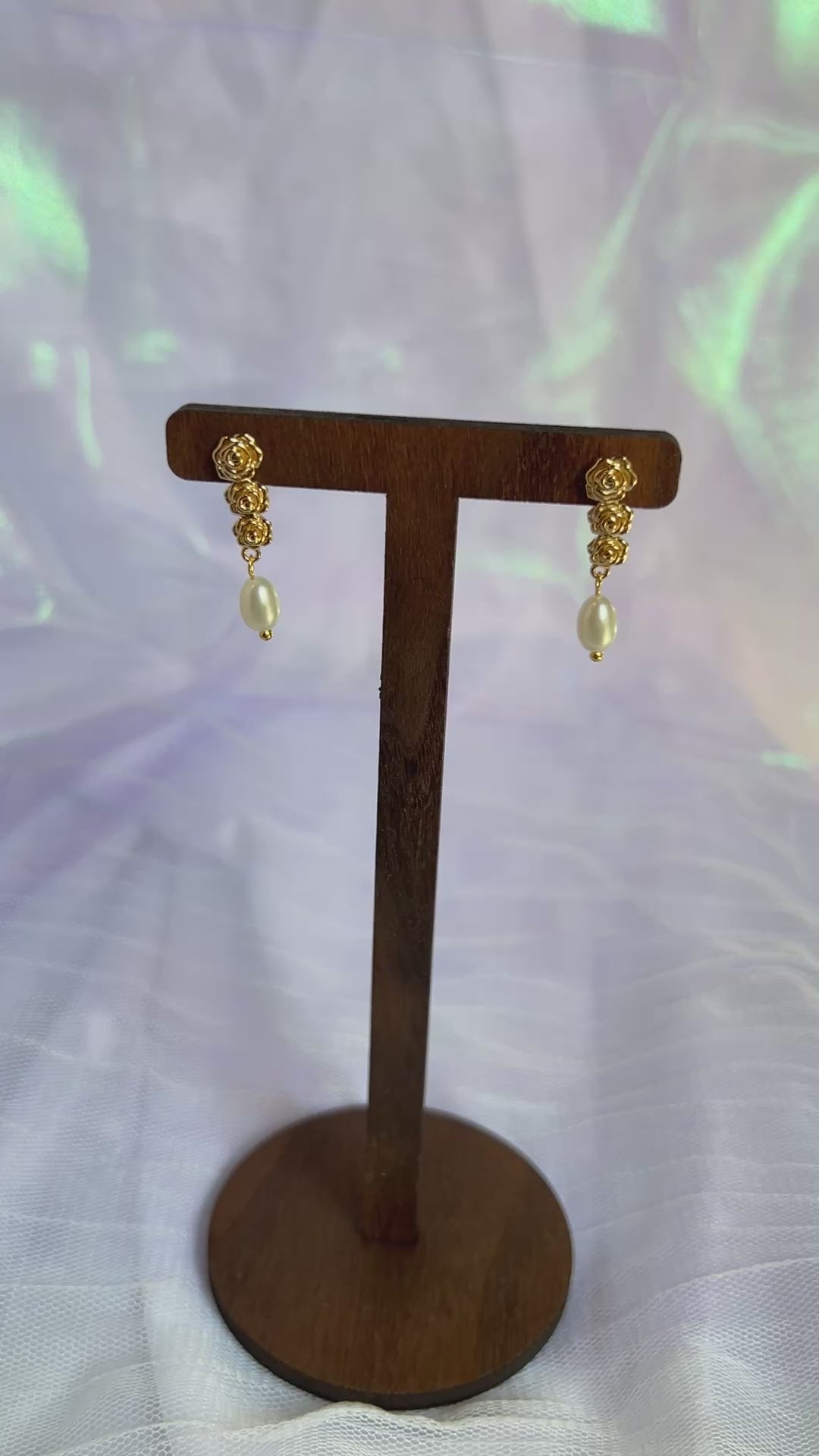 Triple Rose Pearl Earrings